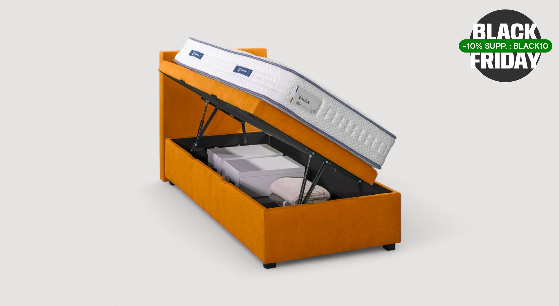 Optez pour le lit coffre OUESSANT latéral version mono pratique et indispensable pour profiter non seulement d'un espace plus optimisé et d'un sommeil apaisant.