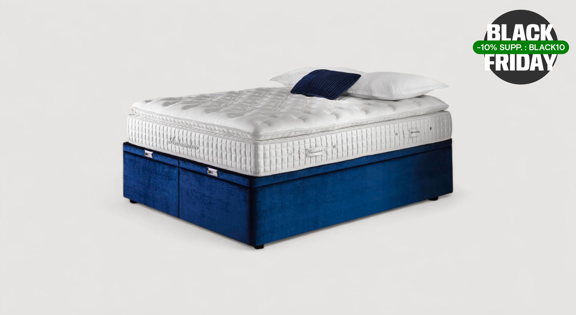 Le sommier à coffre grande hauteur WARREN XXL possède une capacité de rangement exceptionnelle de 1 080 litres pour une dimension 180cm. Ultra résistant, ce lit coffre de rangement est conçu pour durer dans le temps. Ce modèle est équipé de lattes actives pour un soutien dynamique, d’un sommier tapissier antidérapant pour une stabilité parfaite, et d’aérateurs intégrés.