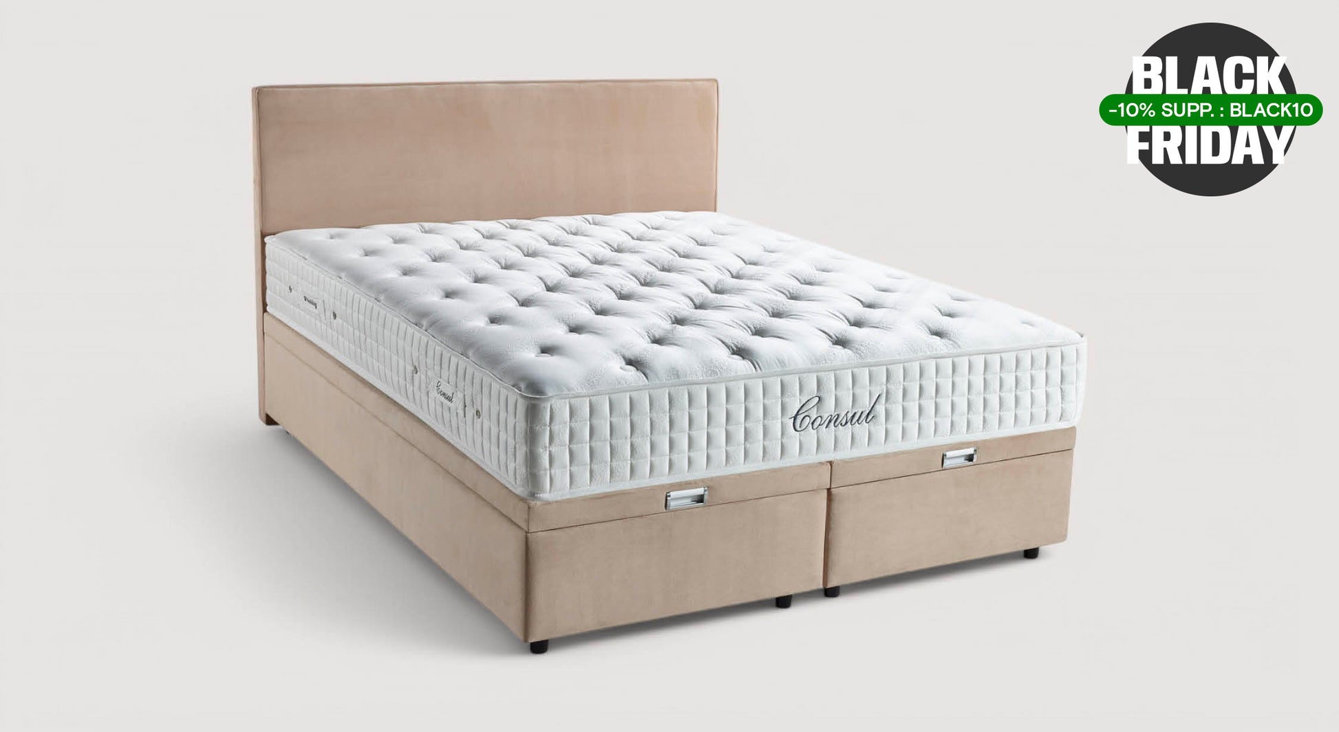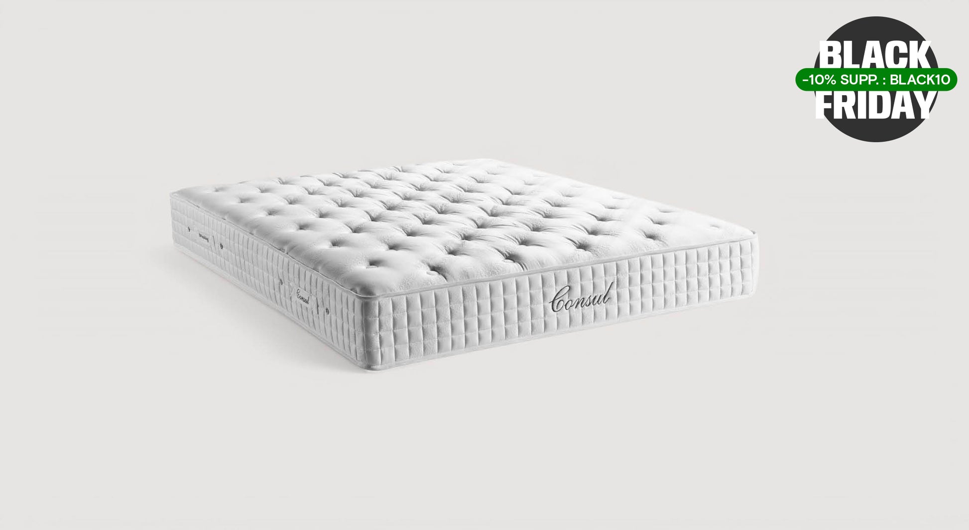 Découvrez le matelas très ferme Consul, conçu spécialement pour les véritables spartiates du sommeil. Avec ses 29 cm d'épaisseur, sa suspension à ressorts ensachés et ses 5 zones de confort, il allie maintien optimal et ergonomie exceptionnelle pour un repos inégalé.