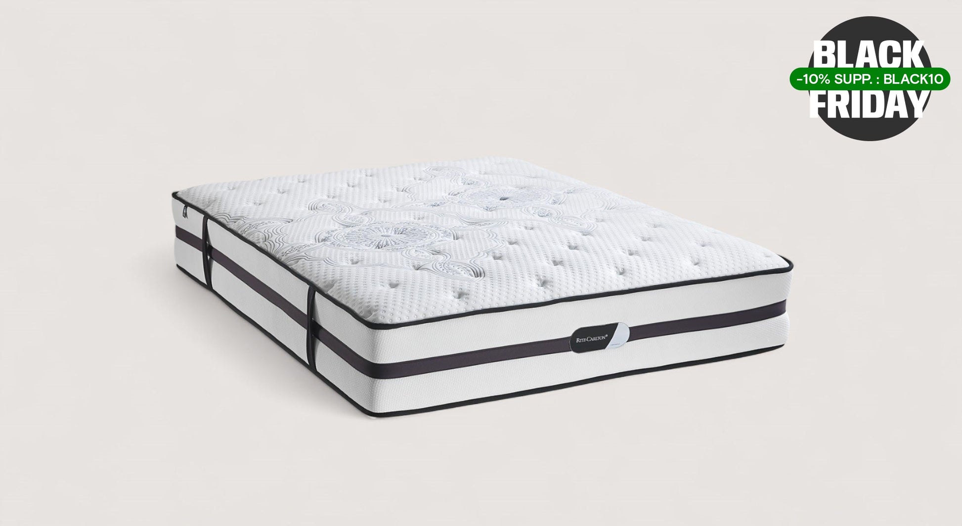 Prendre rdv en magasinAdoptez le matelas moelleux Ritz, l'alliance parfaite entre l'accueil confortable et le soutien ferme. Cette exclusivité Le Lit est dotée d'une technologie à ressorts ensachés avec un garnissage laine et soie mais également d'une mousse à mémoire de forme viscogel pour un confort toujours plus optimal.